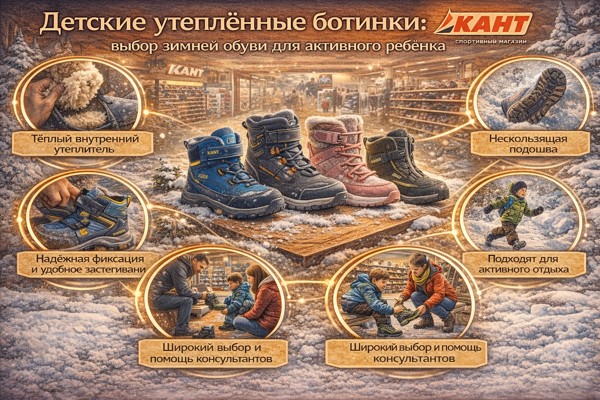 Таким образом, обувь становится частью здорового и активного детства. ЗаключениеДетские утеплённые ботинки - это важный элемент гардероба для холодного сезона, от которого напрямую зависят комфорт, безопасность и активность ребёнка. Их выбор требует учёта анатомических особенностей детской стопы, уровня активности, погодных условий и качества материалов. Специализированные спортивные магазины, такие как Кант, формируют ассортимент, ориентированный на движение, функциональность и практичность, что делает их значимым звеном в выборе детской зимней обуви. Осознанный подход к покупке утеплённых ботинок помогает создать условия, при которых ребёнок может свободно двигаться, играть и проводить время на свежем воздухе независимо от сезона, сохраняя здоровье и комфорт. |
